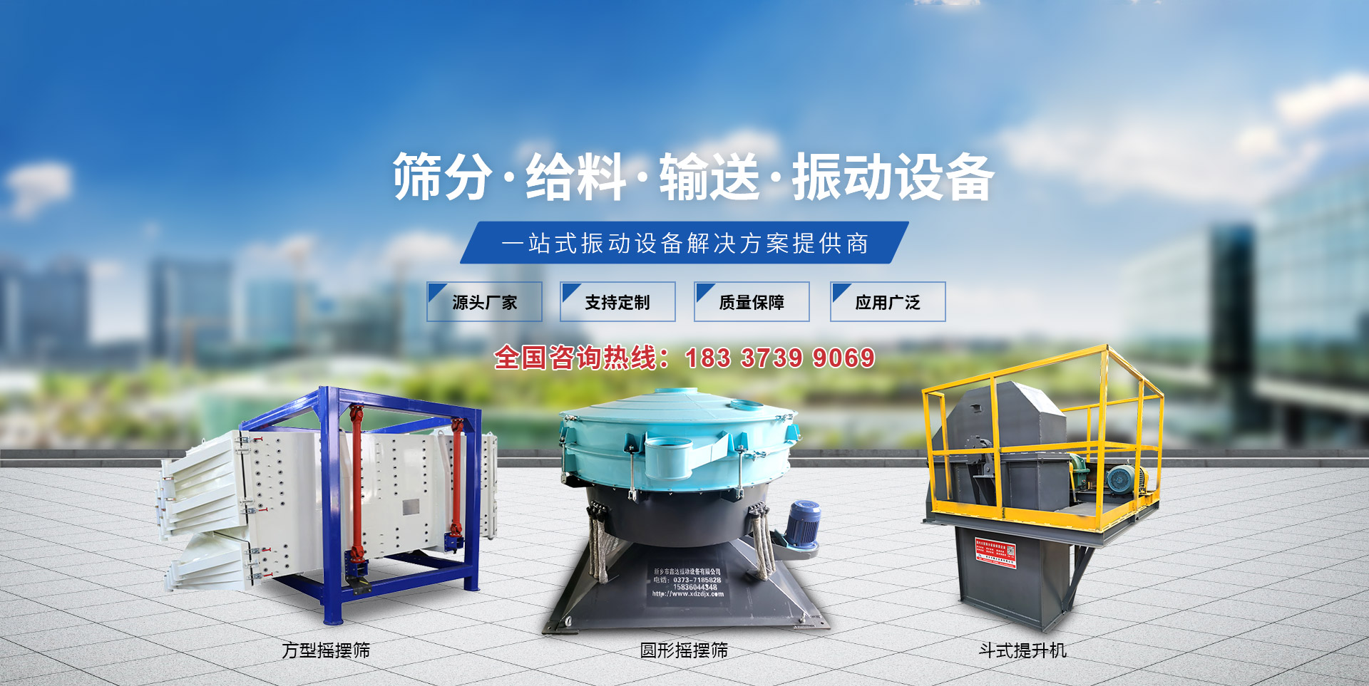 新鄉市鑫達振動設備有限公司是研制、生產、銷售篩分設備、振動設備、提升設備的廠家,以研制生產振動電機,篩分設備而著稱于國內外市場。我公司與中國礦業大學北京理工大學、機電部設計院等高校和科研設計單位緊密配合,依托企業雄厚的經濟基礎完整的技術資料、精良的加工設備以及一批高素質的技術職業隊伍,導入ISO9001:2000國際質量管理體系,以科學管理模式、優良售后服務、不斷完善產品質量。  公司主要產品有:振動篩、超聲波振動篩、直線振動篩、礦用重型篩、旋振篩、脫水篩、直排篩、系列振動電機、振動給料機、給料斗、振動振動防閉篩、振動磨機、斗式提升機、垂直(螺旋)提升機、皮帶輸送機等?! 」疽回瀳猿?“價格合理、服務完善”的宗旨,憑借著高質量高水平的產品,良好的信譽、完善的服務、竭誠與您雙贏合作、共同發展、共創輝煌!
